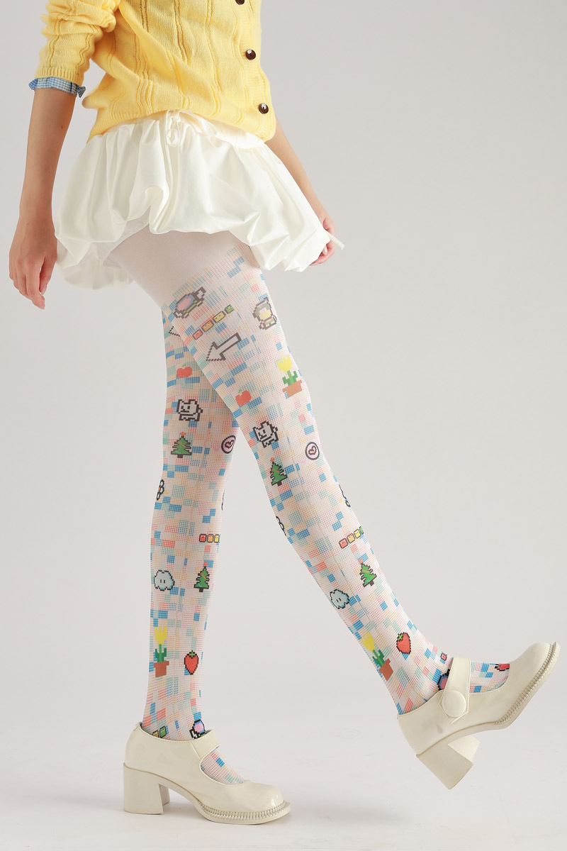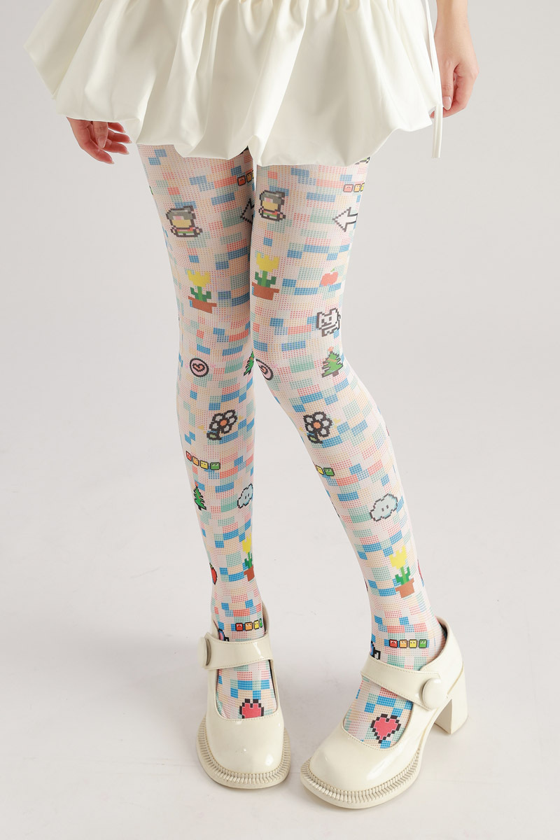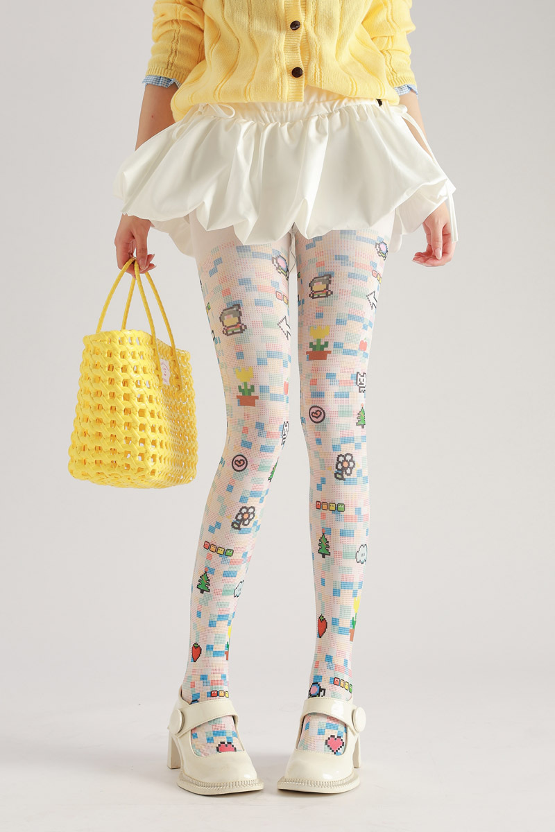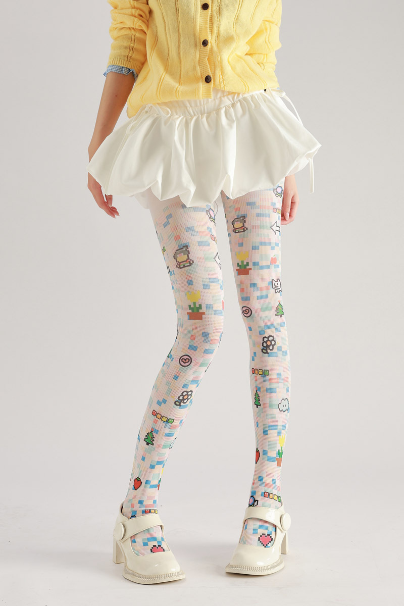 Cartoon pixel print pantyhose, fun and unique loli pattern leggings, novelty socks for beauties, queen pantyhose, CD TS goddess stockings, women's tight pantyhose, casual and comfortable stockings for girls, patterned tight socks