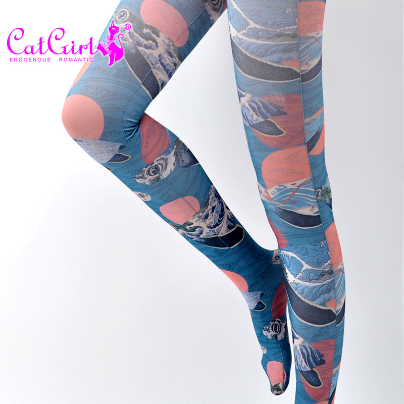 Catgirl cartoon stockings, Harajuku style jacquard pantyhose, vintage stockings for spring and autumn, Japanese style stockings, spring funky tights, cool patterned tights