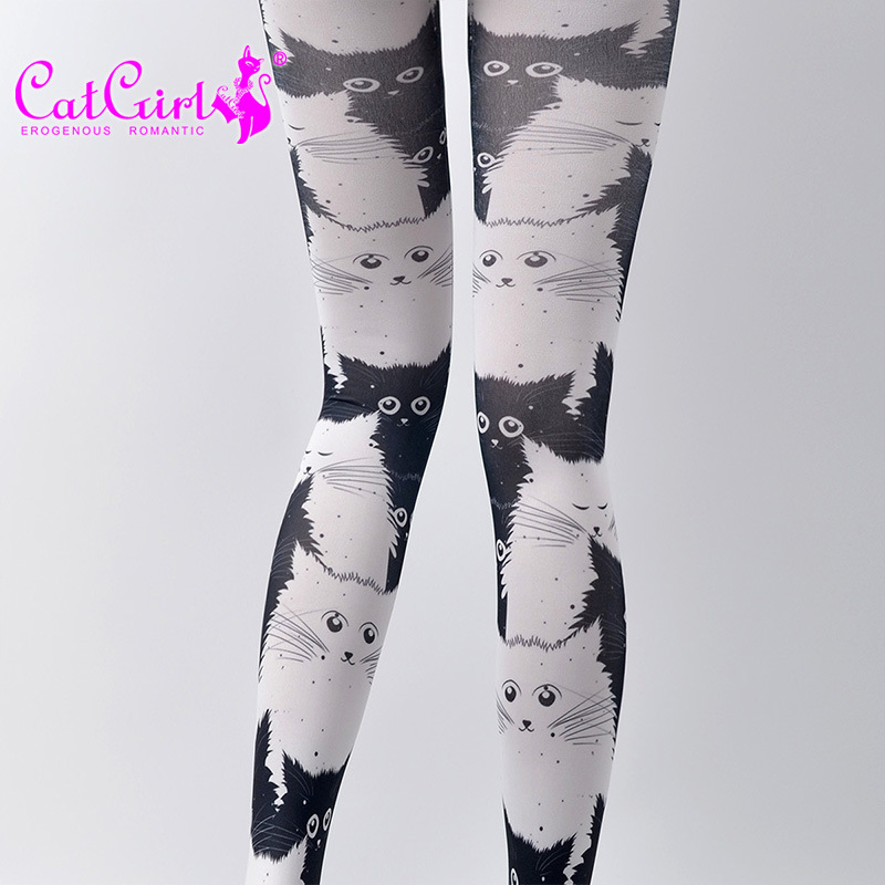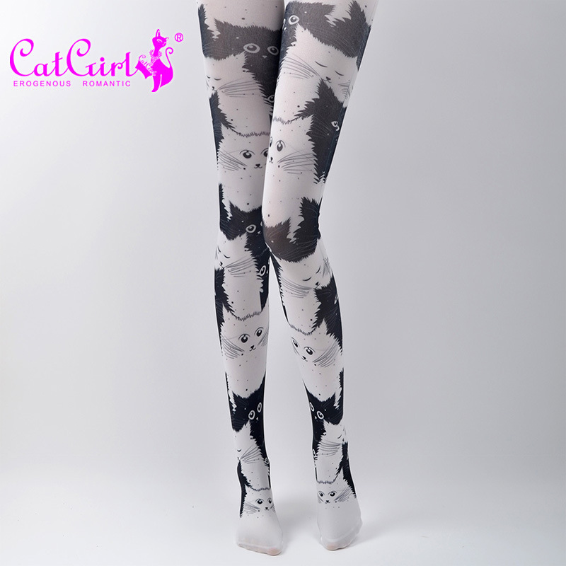 catgirl cat pattern stockings, jacquard pantyhose for spring and autumn, cute stockings, Japanese style stockings, trendy ins socks for women, funky tights, cool patterned tights
