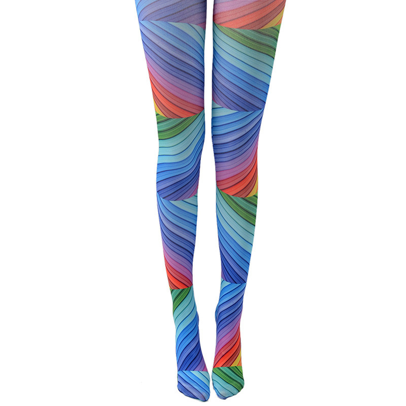 catgirl Japanese-style rainbow stockings, jacquard pantyhose for spring and autumn, black spring-summer gradient stockings, unique funky tights, cool patterned tights