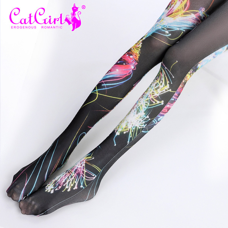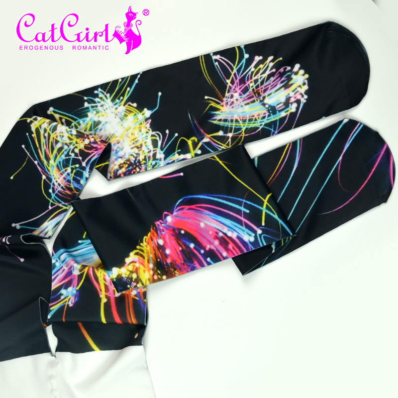 catgirl neon gradient stockings Japanese Harajuku style tattoo print pantyhose with unique patterns Korean style trendy socks funky tights cool patterned tights