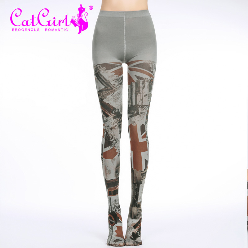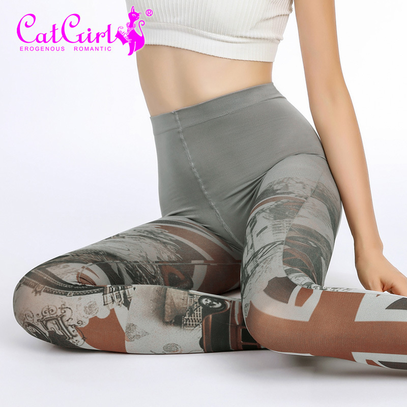 Catgirl printed stockings, unique leggings, trendy women's pantyhose, spring and autumn gradient stockings, floral stockings, purple funky tights, cool patterned tights
