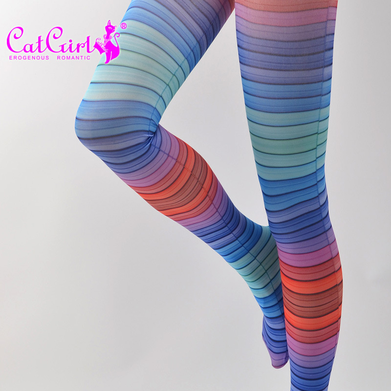 catgirl rainbow socks gradient jacquard pantyhose spring and autumn sublimation leggings Japanese style trendy pantyhose