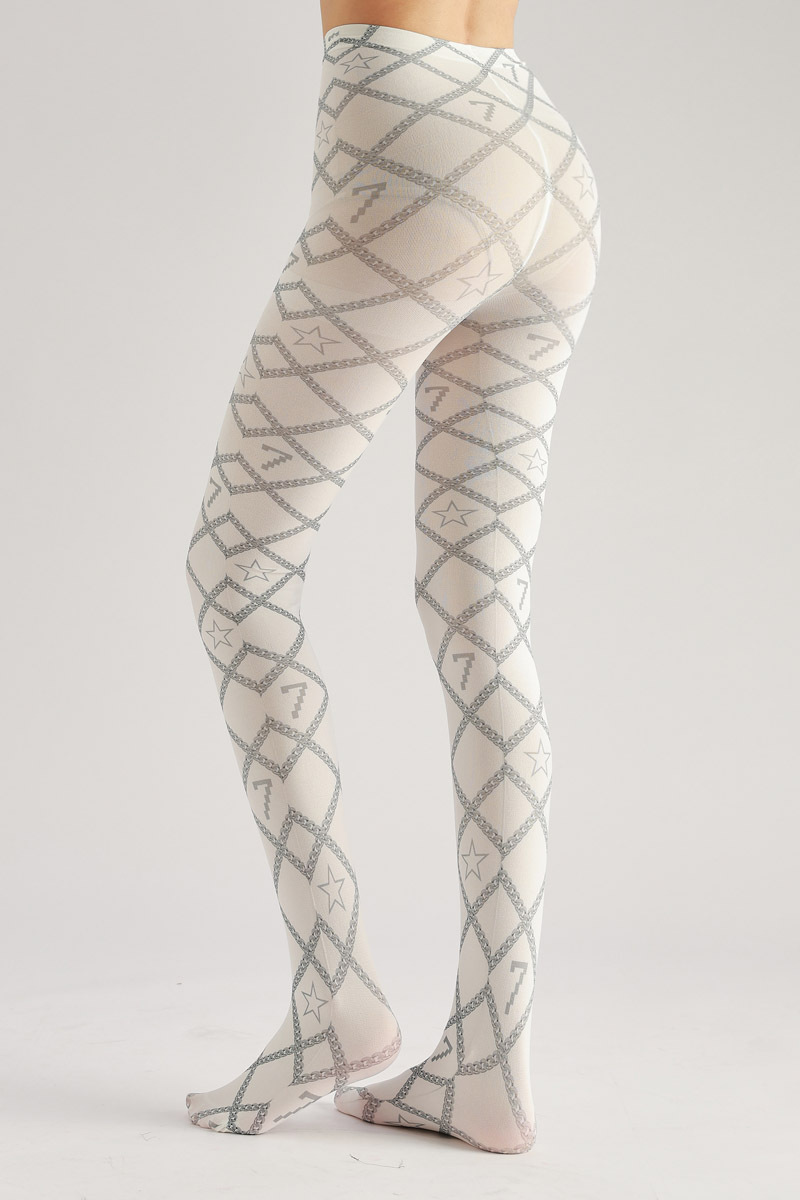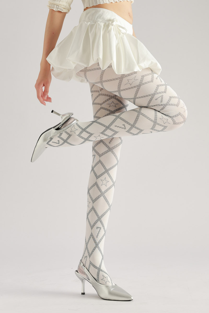 Chain geometric print pantyhose, chain patterned unique leggings, novelty socks for beauties, queen pantyhose, CD TS goddess stockings, women's tight pantyhose, casual comfortable stockings for girls