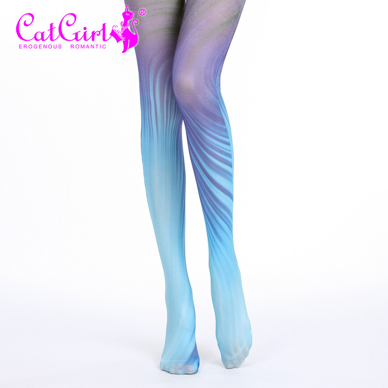 Creative patterned pantyhose, personalized printed slim-fit white stockings, blue ripple funky tights, cool patterned tights
