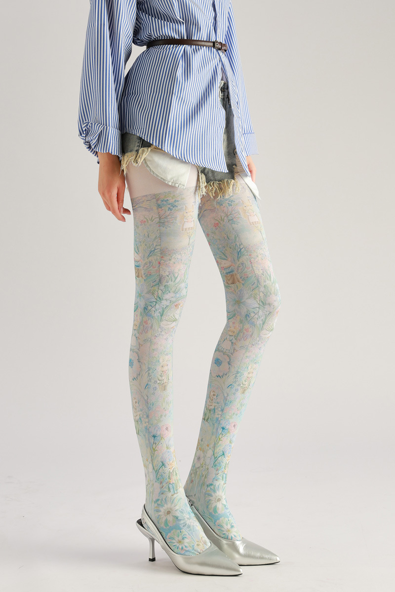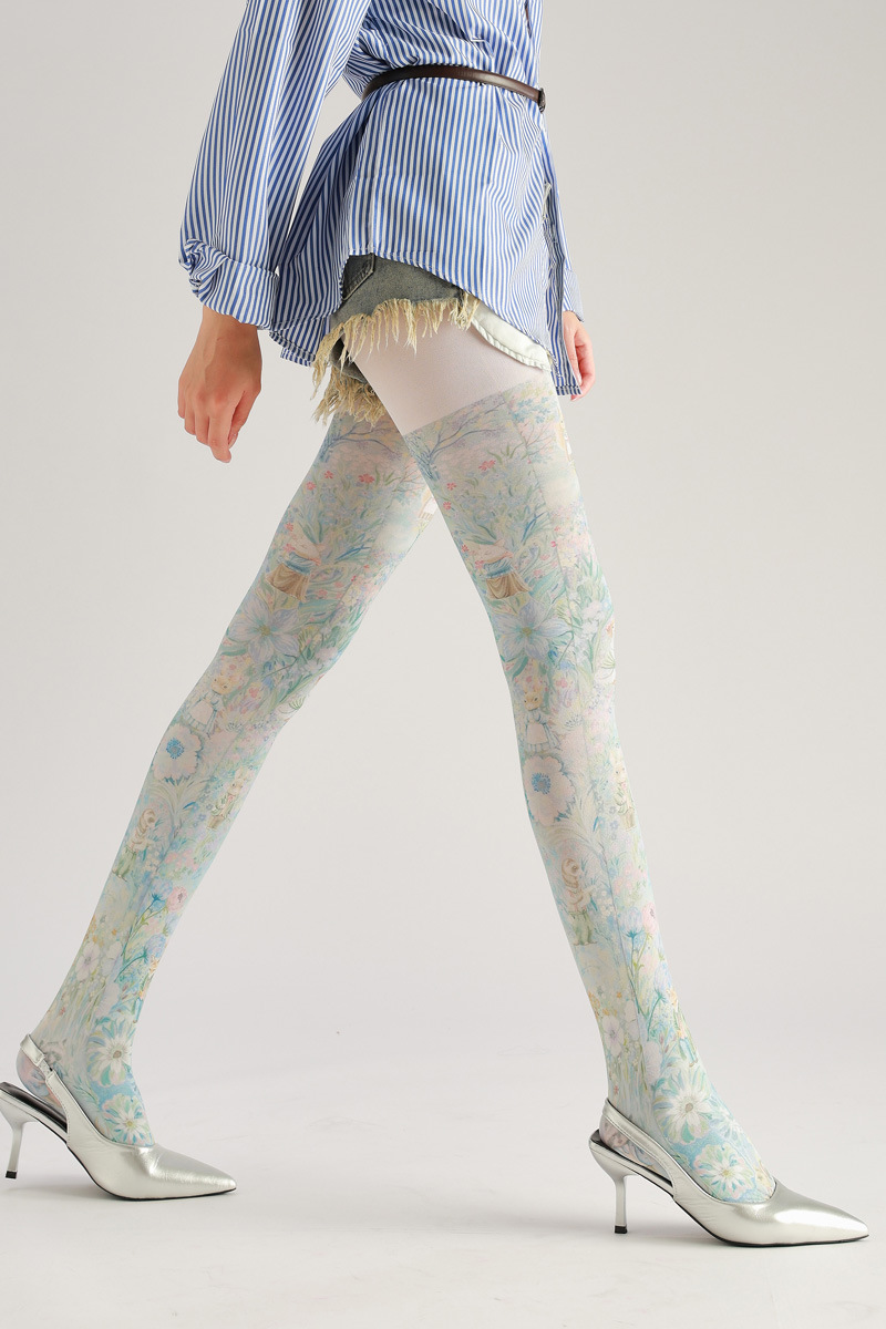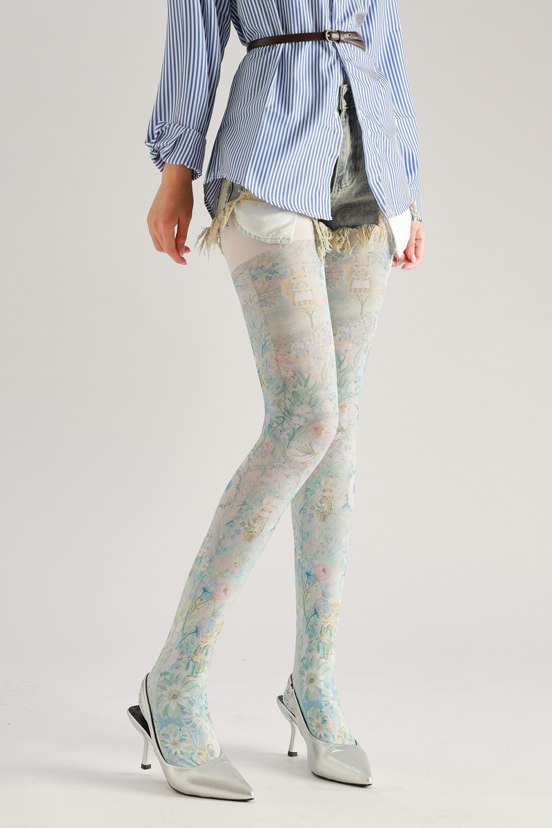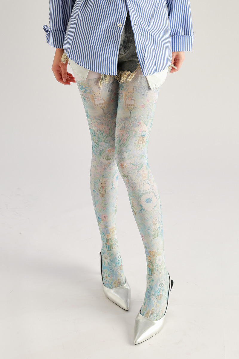 Forest-themed super cute squirrel, rabbit, and flower pattern printed pantyhose, novelty socks for beauties, queen pantyhose, CD TS goddess stockings, women's tight pantyhose, casual and comfortable stockings for girls, patterned tight socks