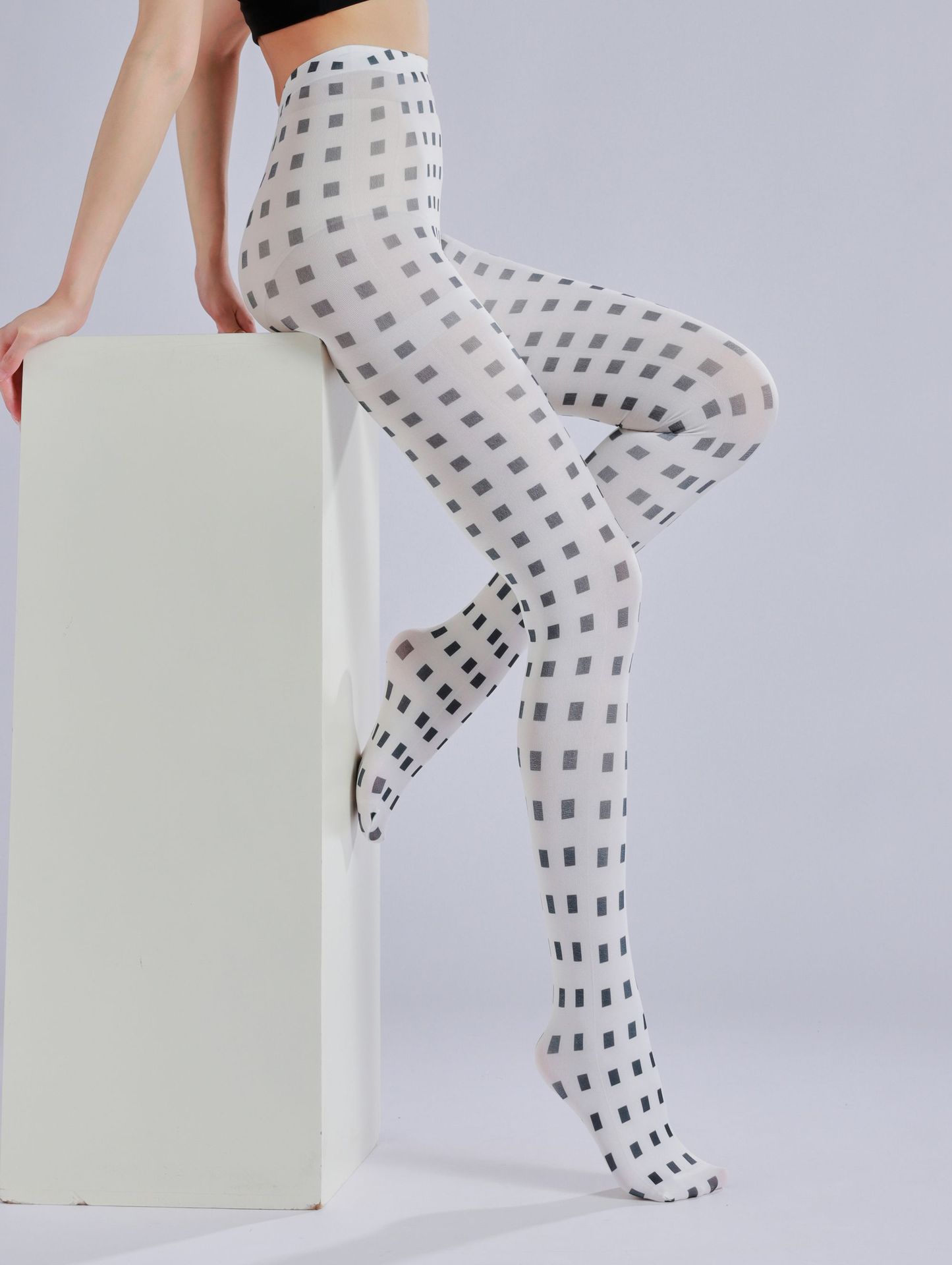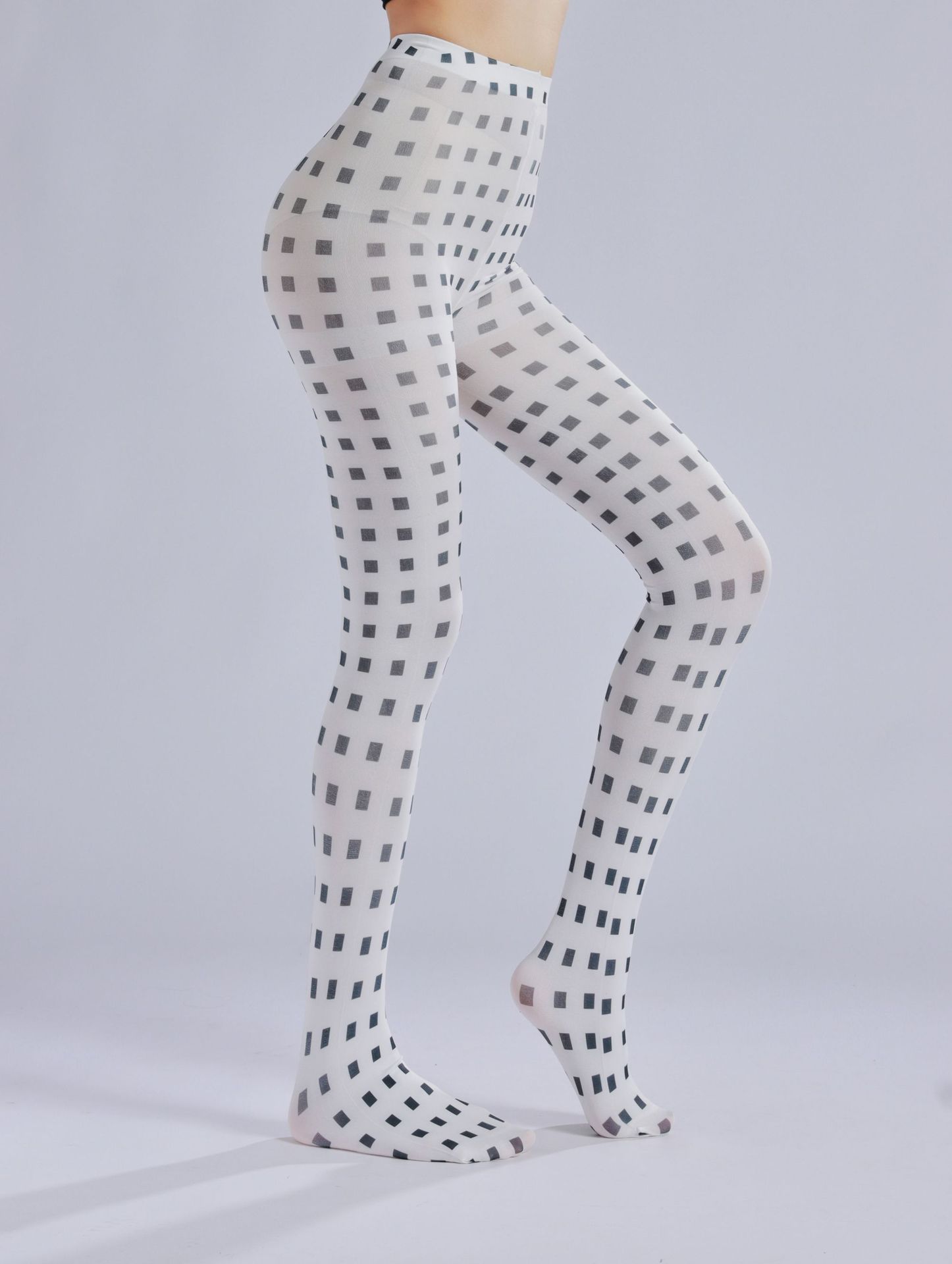 Gradient plaid print pantyhose, fashionable black and white plaid pattern leggings, simple socks, novelty socks for beauties, queen pantyhose, CD TS goddess stockings, women's tight pantyhose, casual comfortable stockings for girls, patterned tight socks