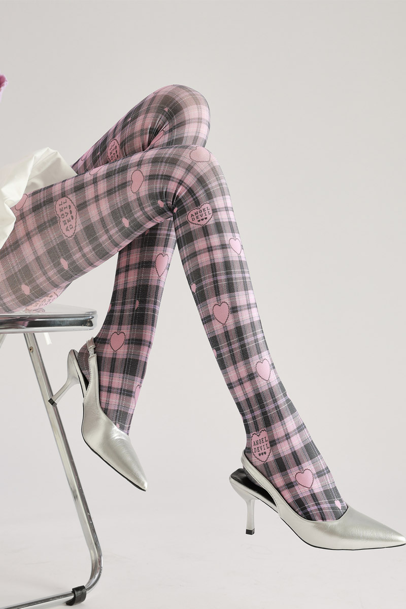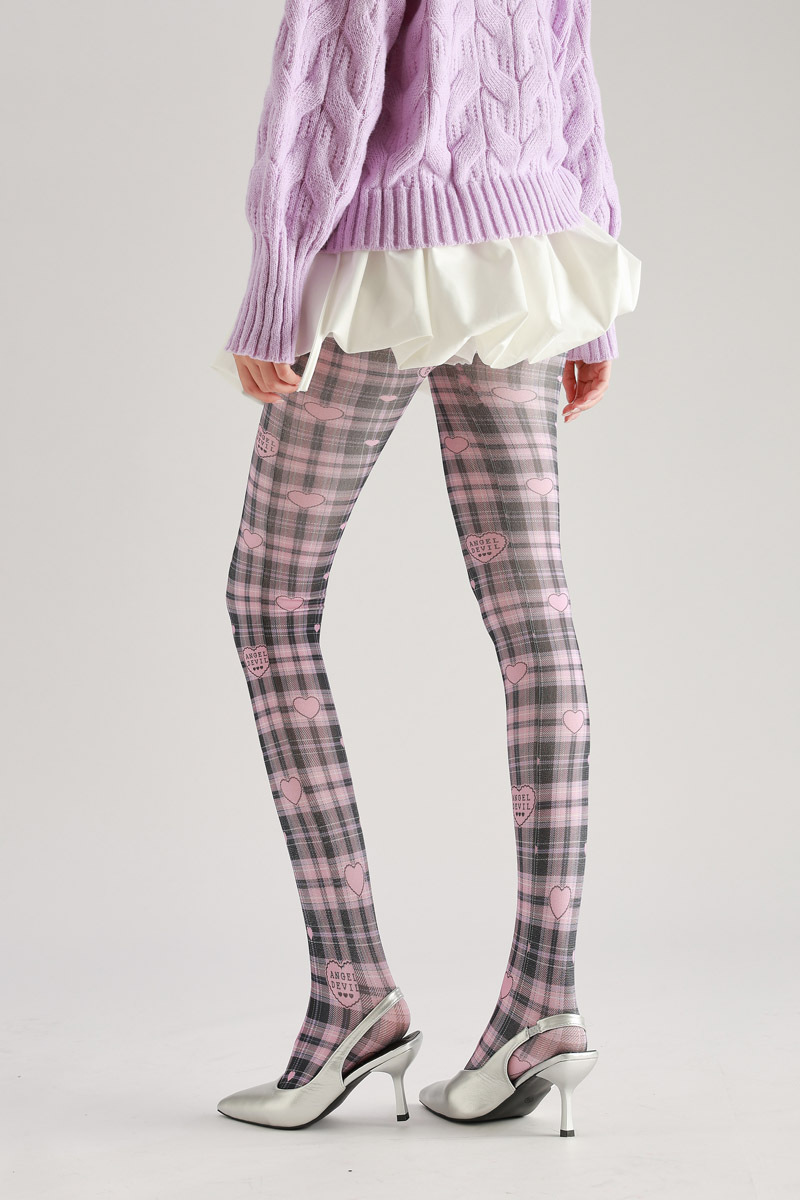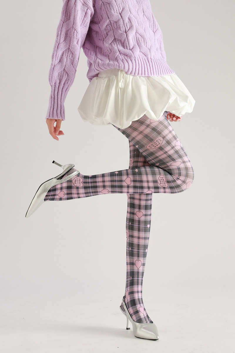 Heart-patterned colorful plaid pantyhose, novelty socks for beauties, queen pantyhose, CD TS goddess stockings, women's tight pantyhose, casual comfortable stockings for girls, patterned tight socks