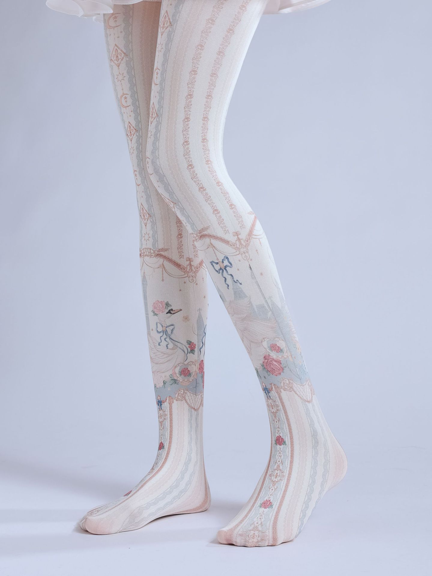 Lolita Spring and Autumn Printed Pantyhose, Gorgeous Patterned White Pantyhose, Girl's Cosplay Socks, Student Socks, Beautiful Novelty Socks, Queen Pantyhose, CD TS, Goddess Stockings, Women's Tight Pantyhose, Girls' Casual Comfortable Stockings