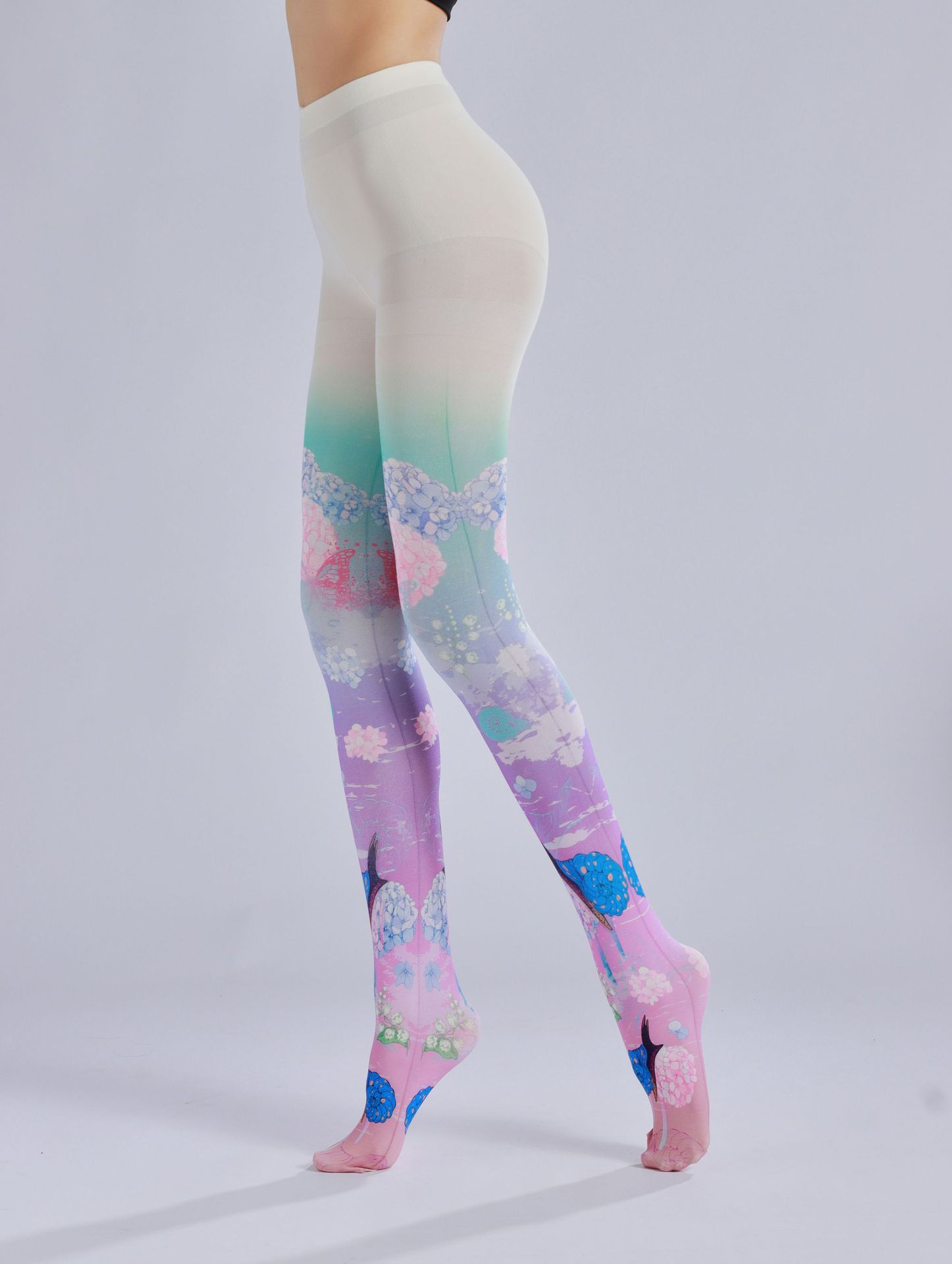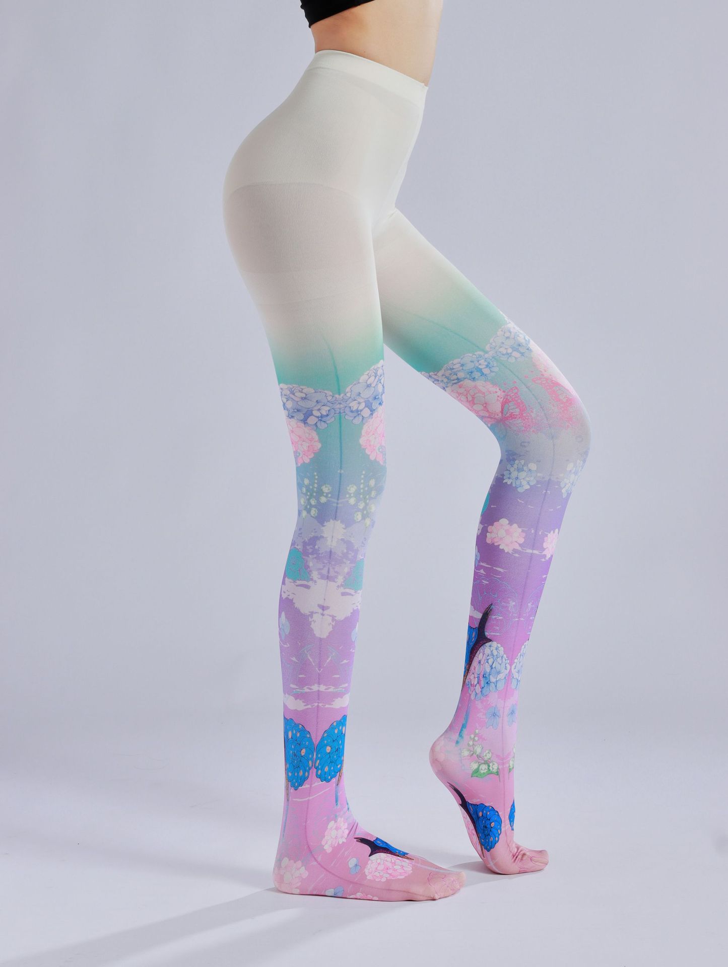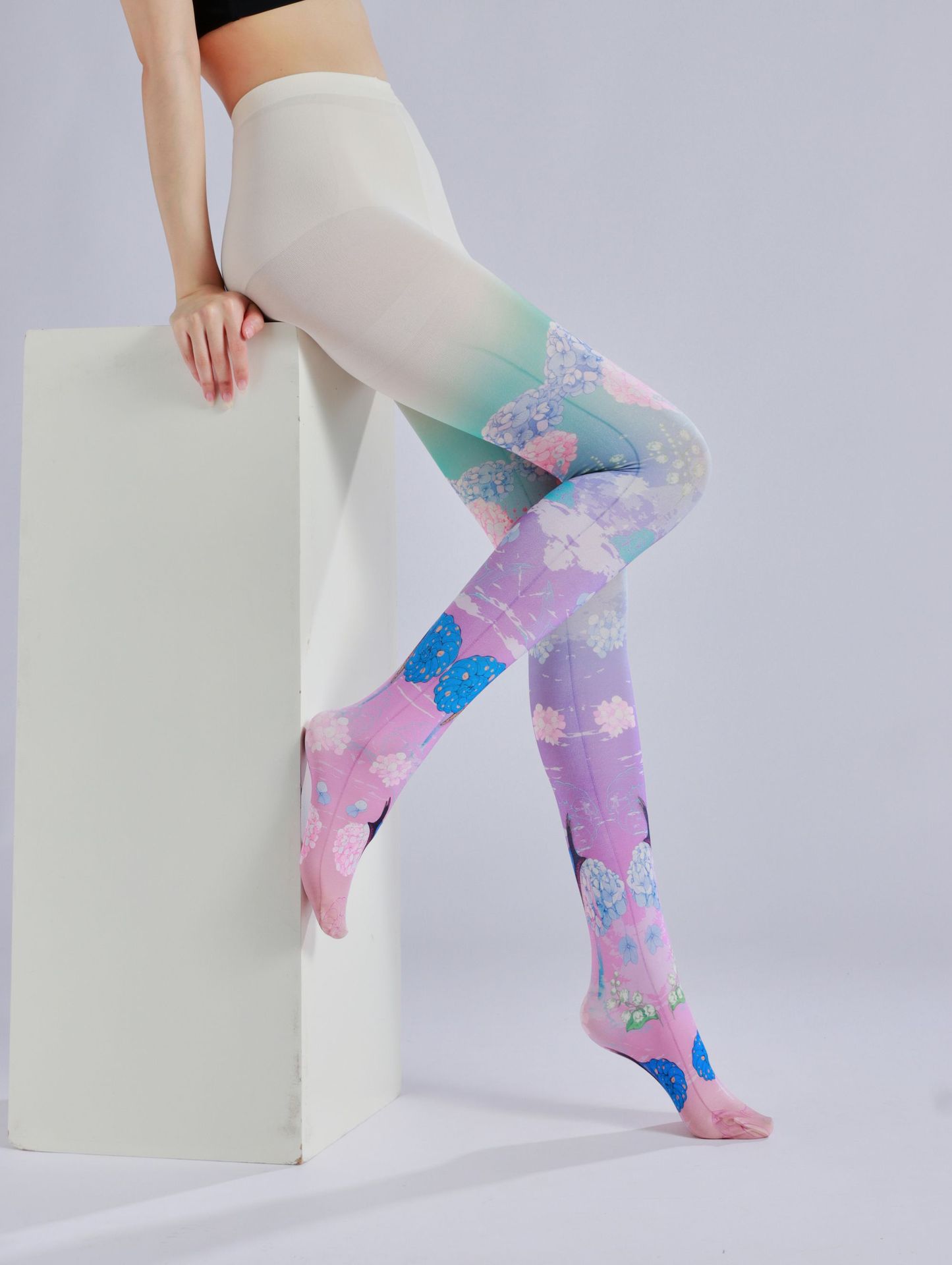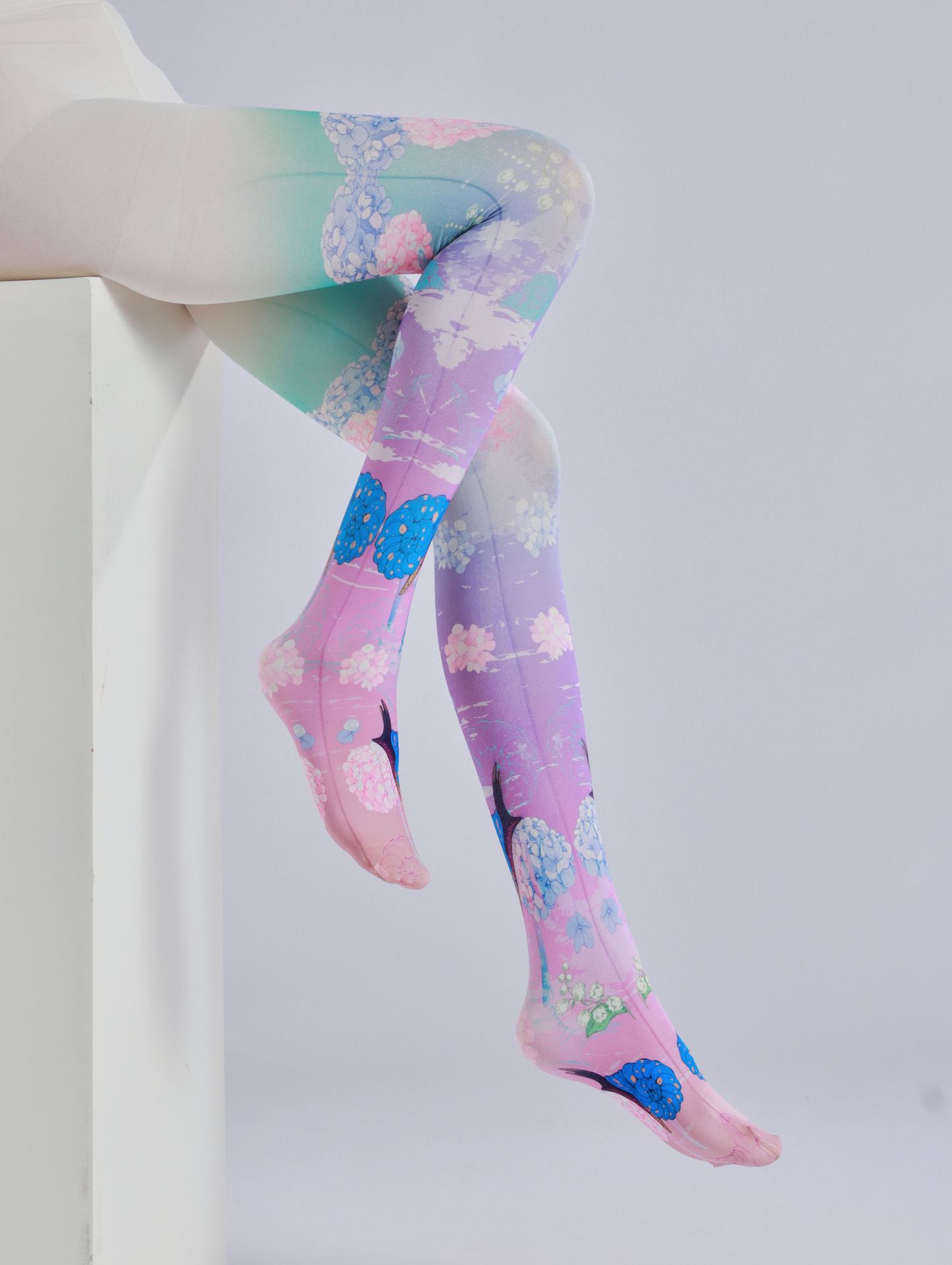 Painted Hydrangea Print Pantyhose Fresh Floral Sweet Lolita Leggings Internet Celebrity Socks Trendy Socks Novelty Socks for Beauties Queen Pantyhose Women's Tight Pantyhose Casual Comfortable Stockings for Girls Patterned Tight Socks