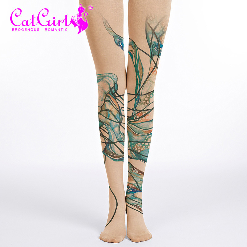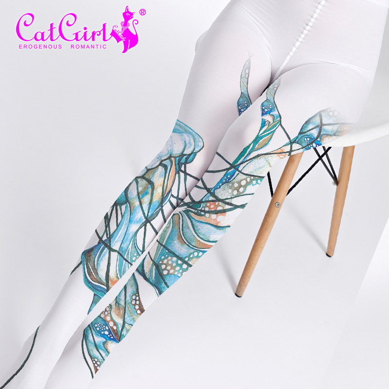 Printed stockings Japanese Harajuku style unique pantyhose Lolita gradient stockings for spring and autumn